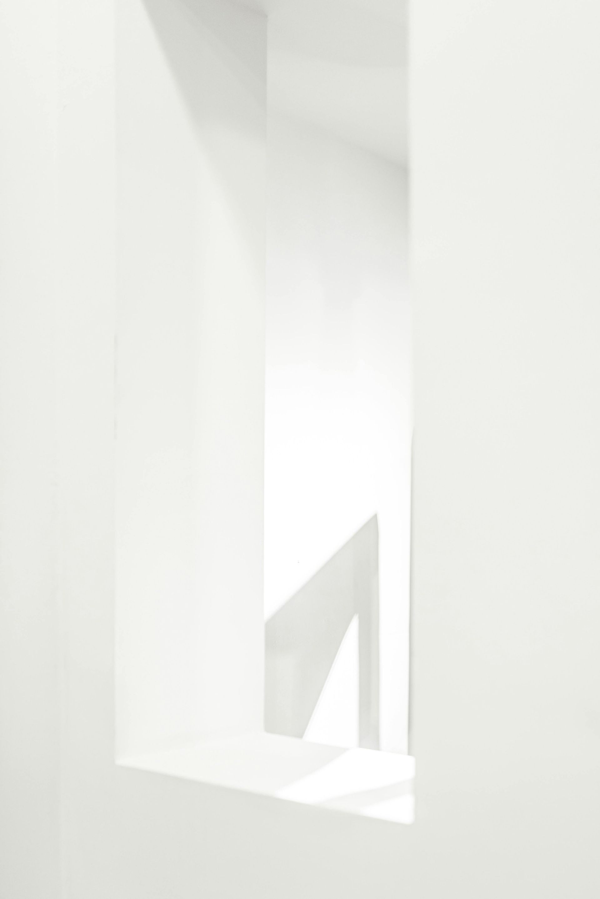 • White architectural interior with linear patterns and lighting.